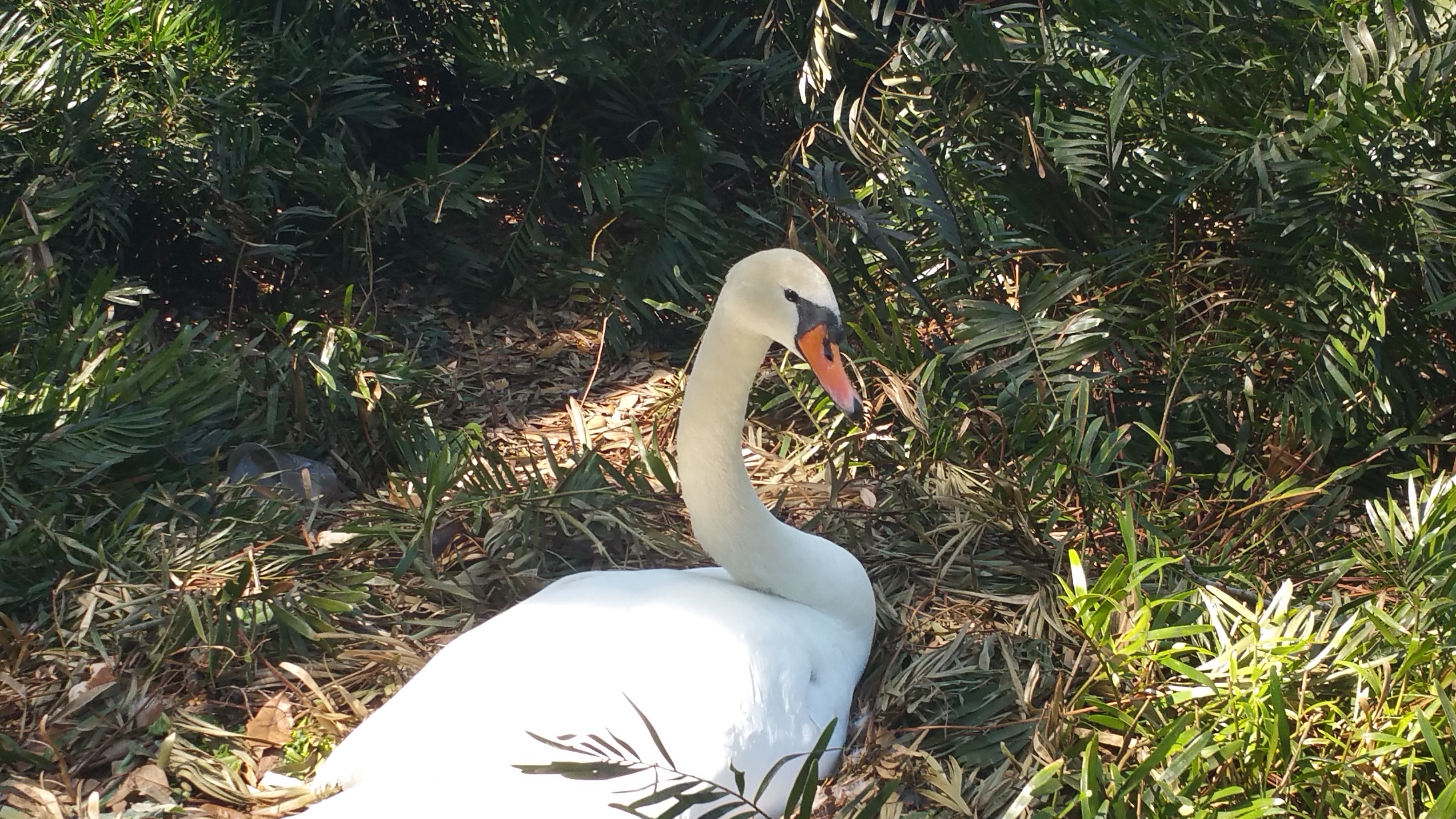 A Swan nesting in the park