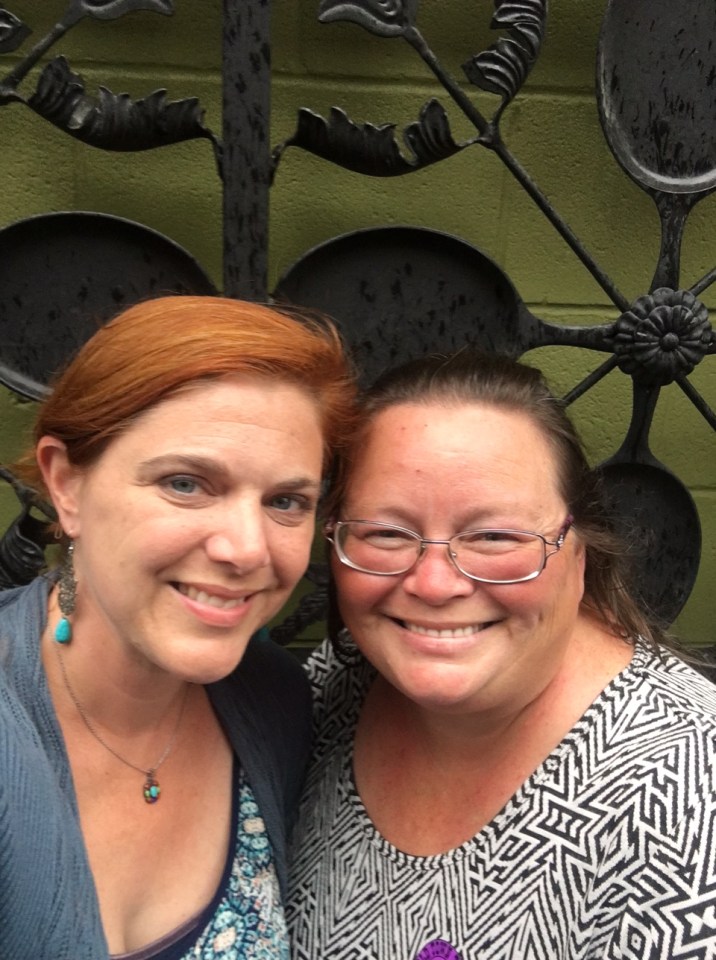 IMG_8832 ← Previous Next → Marti & Jennie just outside the back entrance to the gift shop at The Lady & Sons